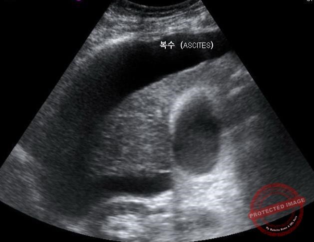 복수가 찬 간경변 환자의 간 초음파 이미지 (출처 : 위키미디어)