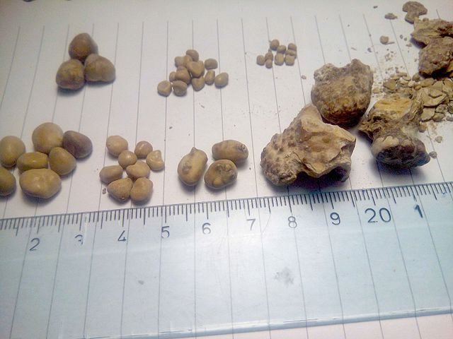 다양한 종류의 결석들 (출처 : 위키미디어)