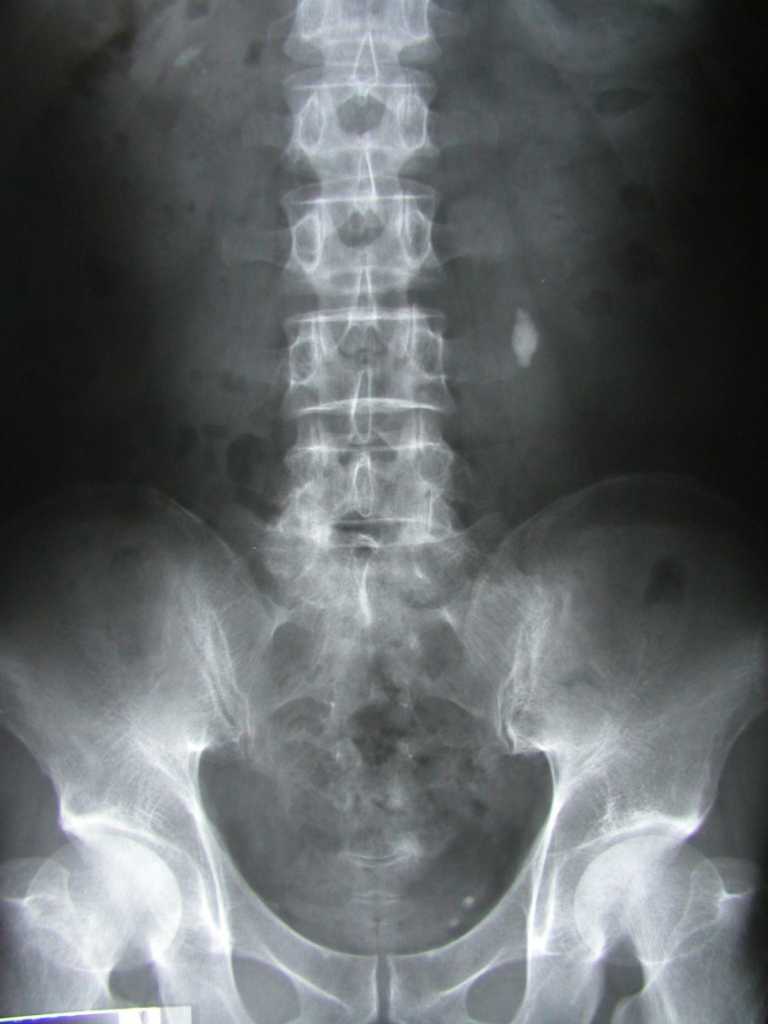 KUB 검사에서 보이는 결석 (출처 : 위키 미디어)